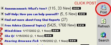 Select the conference you wish to post for example Free Advice (General Topics) or other conference like Flying Star (Xuan Kong Fei Xing). Click on it to expand the topics and also to select that conference as the current conference to post into.